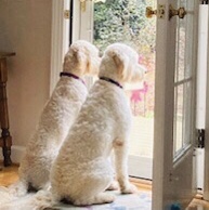 4. “Don’t resist it alone. Don’t you love how our doggies, Lucy and Livy are partners in their wait?”