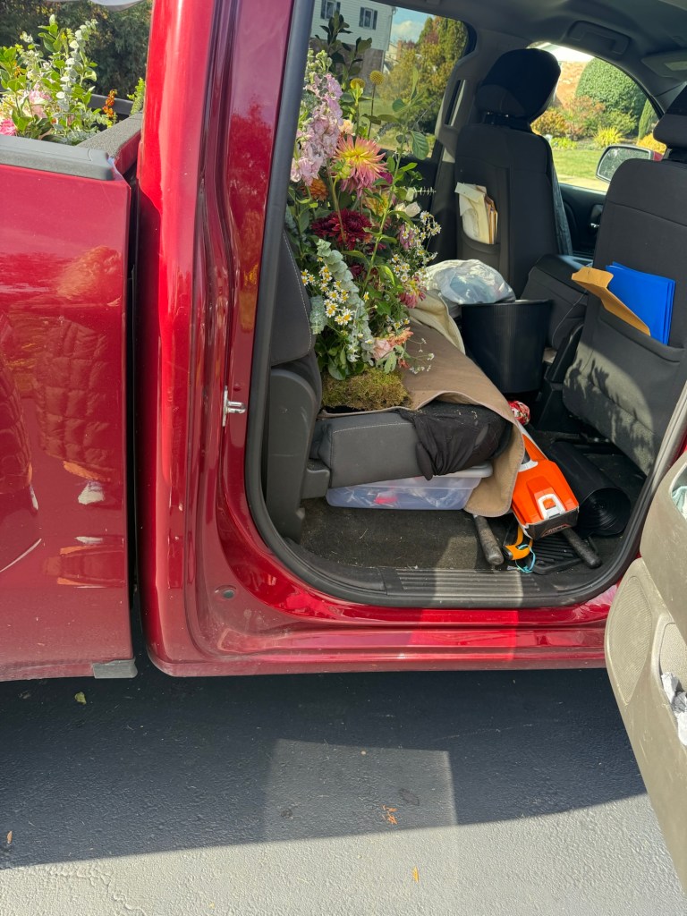 Our flowers travelled from this absolutely beautiful wedding Venue in Aldie, Va to our front yard midnight on Saturday night where Jen, the caterer, again surprised The Daily Lily! This time not with flowers but a ‘garden of flowers’.